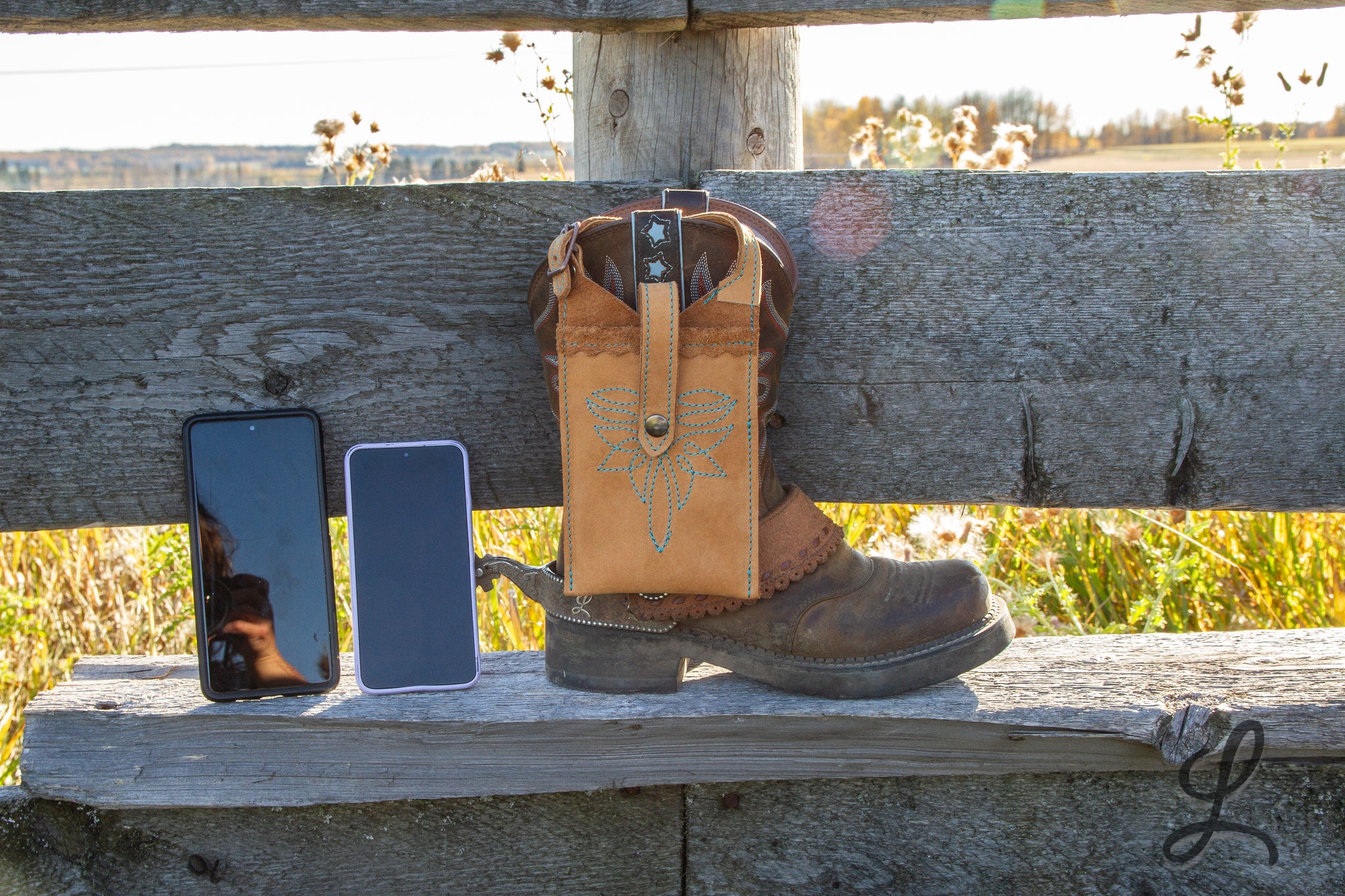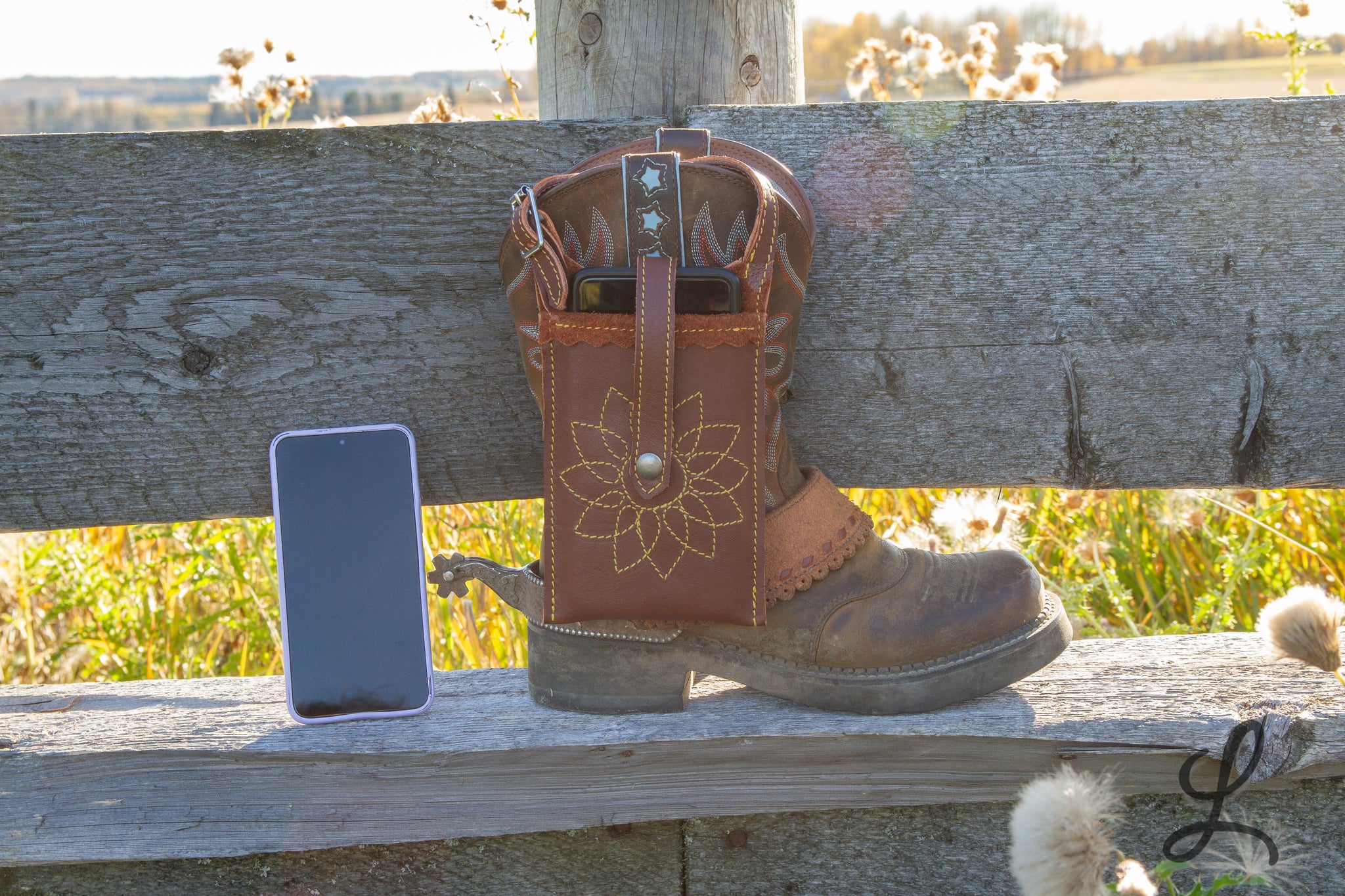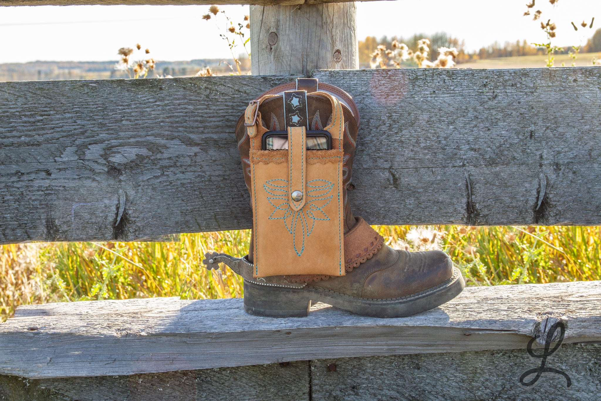 These super cute phone pockets are super handy! Meant to hang on the outside of your boot, these pockets attach with a strap and buckle. No snap to let loose, and your phone goes flying in the dirt.